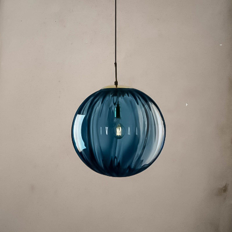 Ribbed glass globe available in Smoke, Amber, Blue, or Red